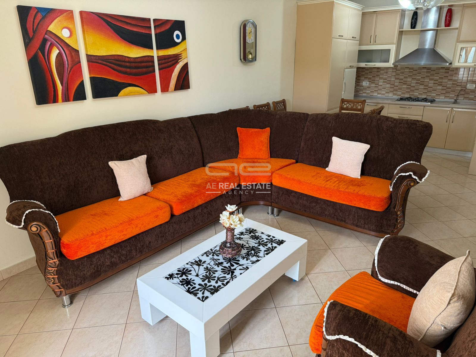 🔹 Sallon me kuzhinë të integruar